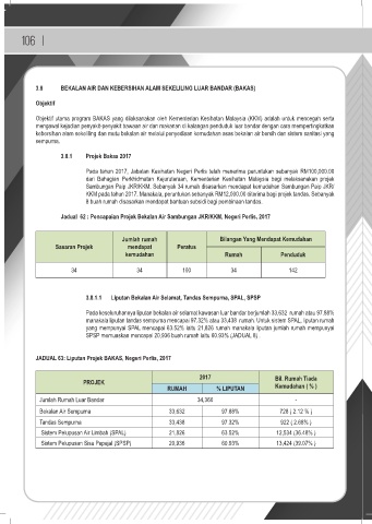 Jadual 62 : Pencapaian Projek Bekalan Air Sambungan JKR/KKM, Negeri Perlis, 2017