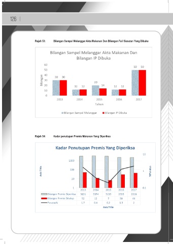 126 | Rajah 53: Bilangan Sampel Melanggar Akta Makanan Dan Bilangan Fail Siasatan Yang Dibuka Rajah 54: Kadar penutupan Premis Makanan Yang Diperiksa