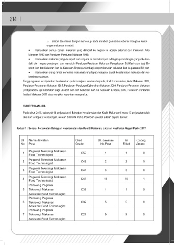 Jadual 1 : Senarai Perjawatan Bahagian Keselamatan dan Kualiti Makanan, Jabatan Kesihatan Negeri Perlis 2017