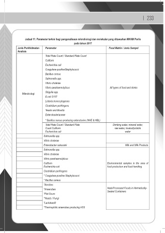 Jadual 11: Parameter terkini bagi penganalisaan mikrobiologi dan molekular yang ditawarkan MKKM Perlis