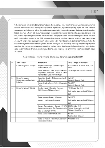 Jadual 14: Kursus / Seminar / Bengkel dalaman yang dianjurkan sepanjang tahun 2017