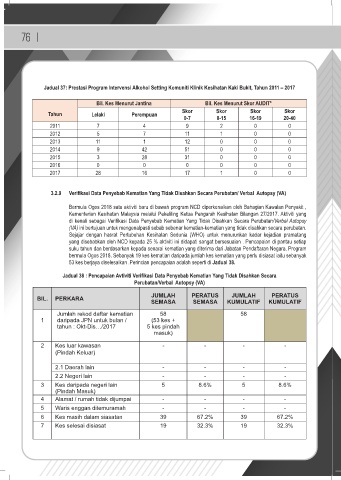 Jadual 38 : Pencapaian Avtiviti Verifikasi Data Penyebab Kematian Yang Tidak Disahkan Secara