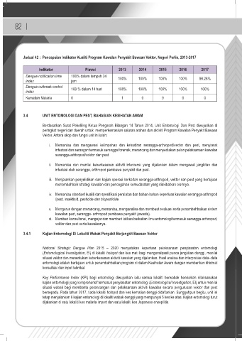 Jadual 42 : Pencapaian Indikator Kualiti Program Kawalan Penyakit Bawaan Vektor, Negeri Perlis, 2013-2017