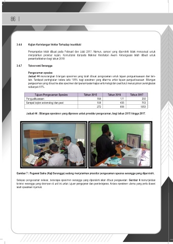 Jadual 44 : Bilangan spesimen yang diproses untuk prosidur pengecaman, bagi tahun 2015 hingga 2017.
