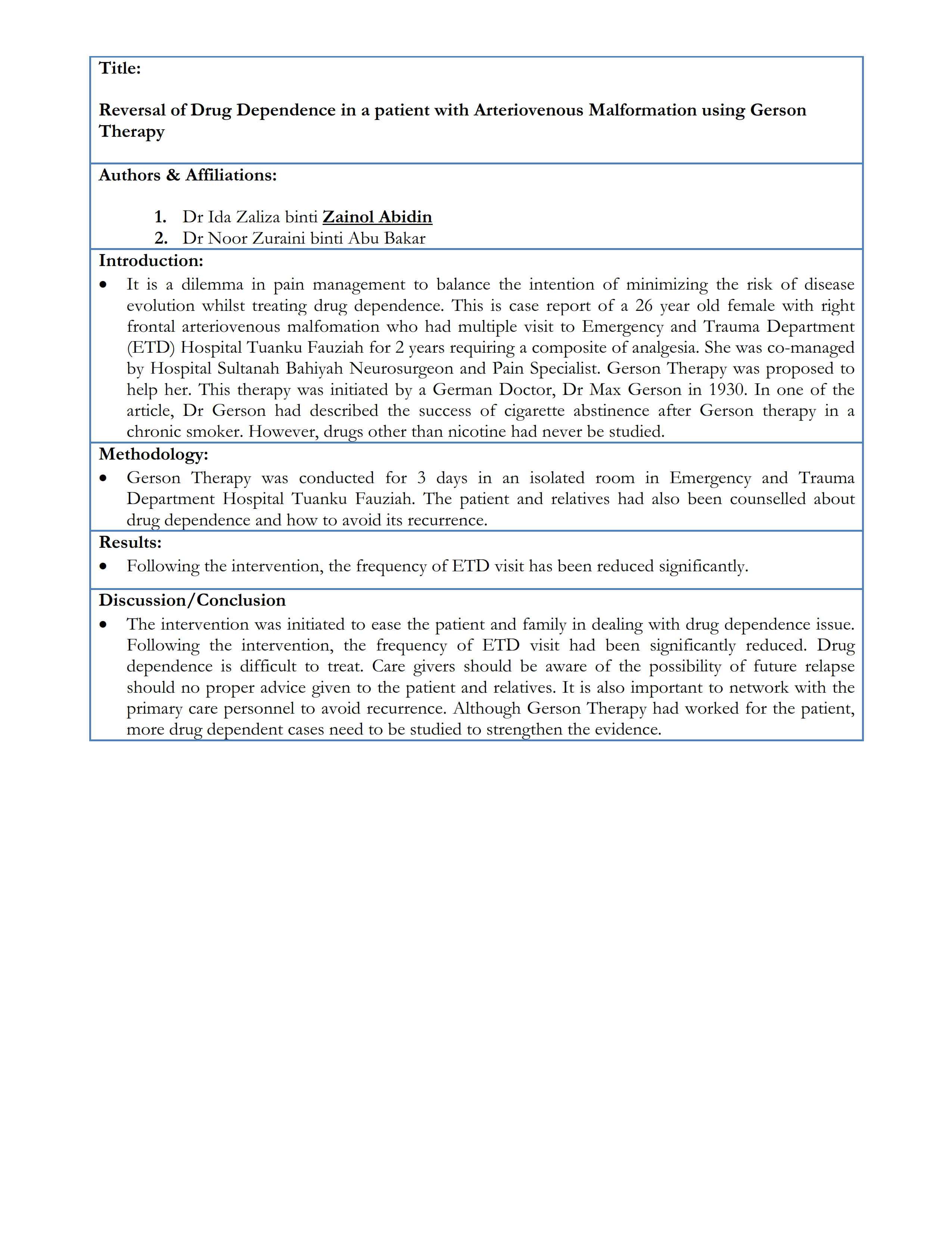 Reversal of Drug Dependence in a Patient with Arteriovenous Malformation using Gerson Therapy |