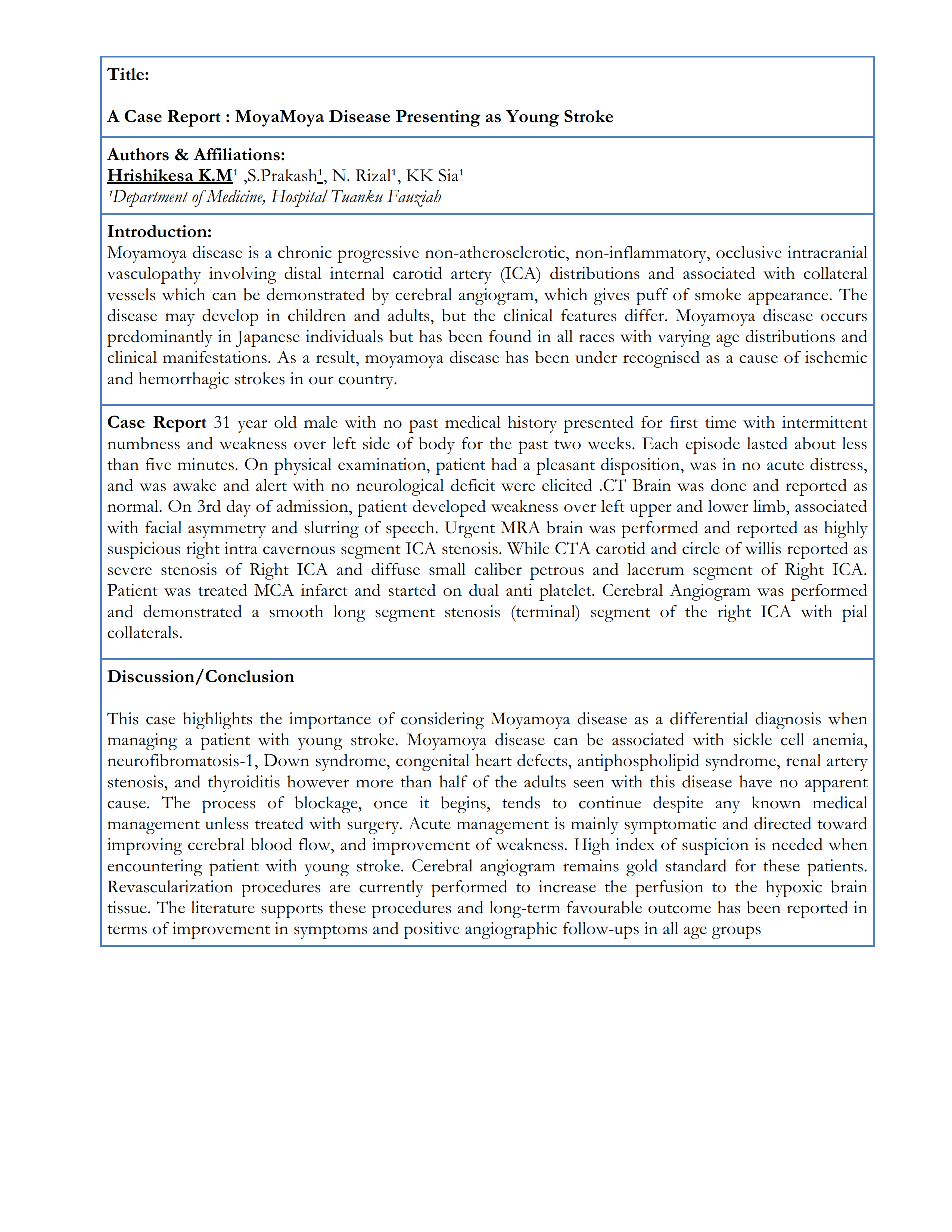 A Case Report: Moya-moya Disease Presenting as Young Stroke |