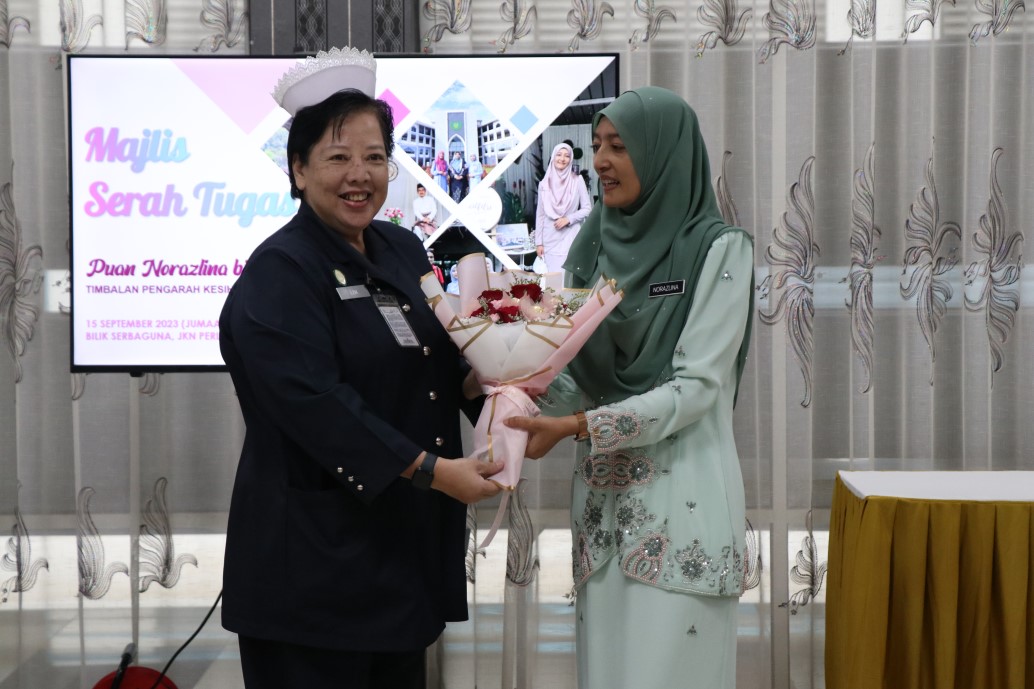 Turut hadir di sesi penyerahan nota serah tugas berkenaan adalah, Timbalan Pengarah Kesihatan Negeri (Pengurusan), Timbalan Pengarah Kesihatan Negeri (Kesihatan Awam), Timbalan Pengarah Kesihatan Negeri (Pergigian), Timbalan Pengarah Kesihatan Negeri (Farmasi), Ketua Penolong Pengarah (Perubatan) mewakili Timbalan Pengarah Kesihatan Negeri (Perubatan), Pegawai-pegawai Kanan dan anggota kesihatan yang terlibat.