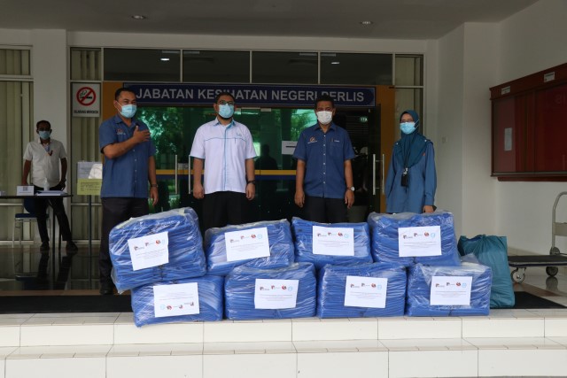Penyerahan Personal Protective Equipment (PPE) Hasil Jahitan Sukarelawan dari Kolej Komuniti dan Persatuan IKRAM Negeri Perlis.